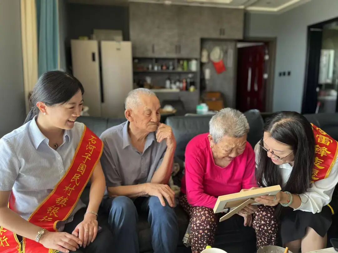 八师石河子市人社局向阳社保所工作人员上门看望慰问辖区95岁以上高龄老人,协助办理养老待遇资格认证并宣讲党的惠民政策(资料图片)。