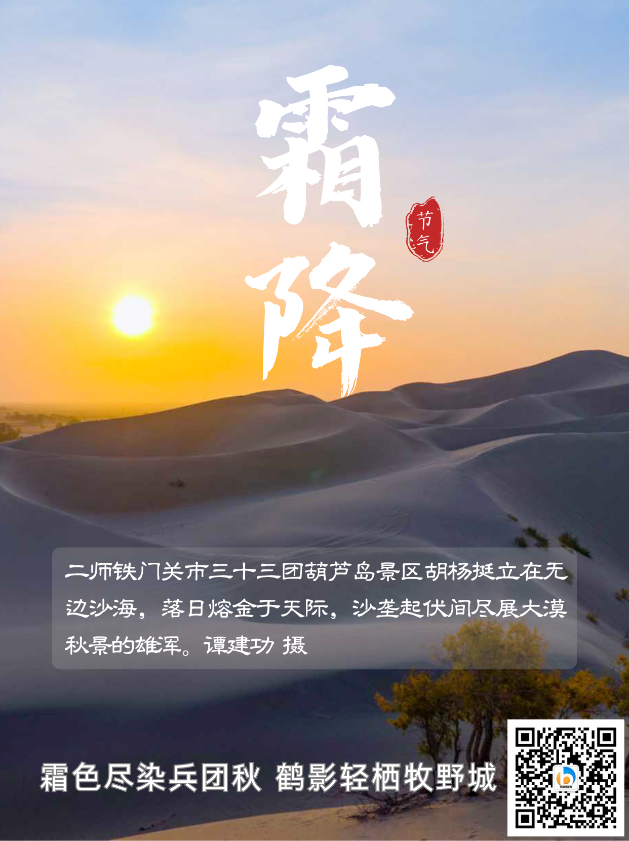 霜降的风终会吹向更深的冬,但兵团的秋景不会褪色。胡杨挺立沙海,是自然的倔强,也恰似兵团人扎根边疆的韧劲。