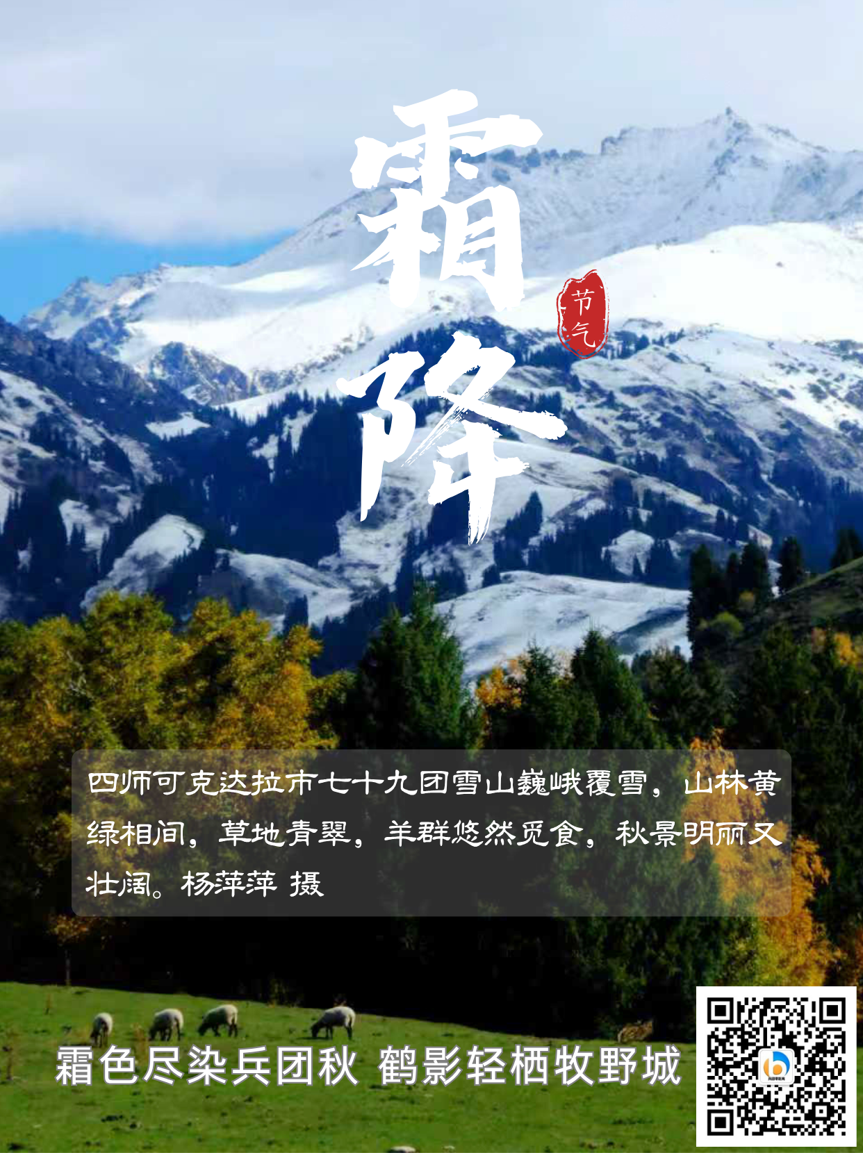 当节气的指针落在“霜降”,兵团大地便被一层清冽的霜华唤醒,漫过戈壁与湿地、雪山与牧场,秋便不再是单薄的季节符号,而是被霜色晕染出筋骨的立体画卷。