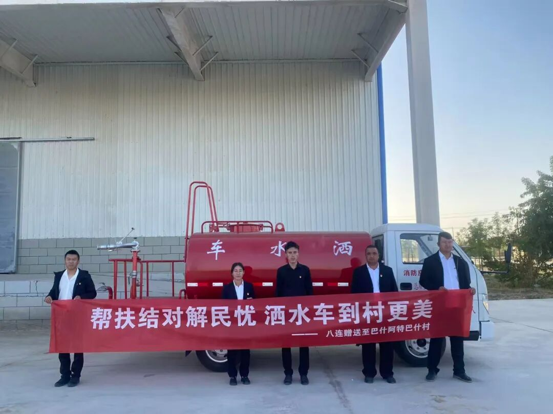 10月22日,八连利用9.5万元连村共建资金为巴什阿特巴什村购置一辆消防洒水车,保障村民生命财产安全,兼顾道路洒水降尘功能,受到村干部和群众的一致好评。