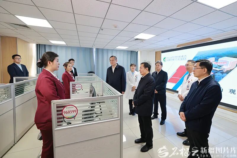 10月28日,自治区党委书记、兵团党委第一书记、第一政委陈小江在兵团第十三师红星医院,详细了解医疗援疆及“一键救助平台”运行情况,宣讲党的二十届四中全会精神。石榴云/新疆日报记者 崔志坚 摄