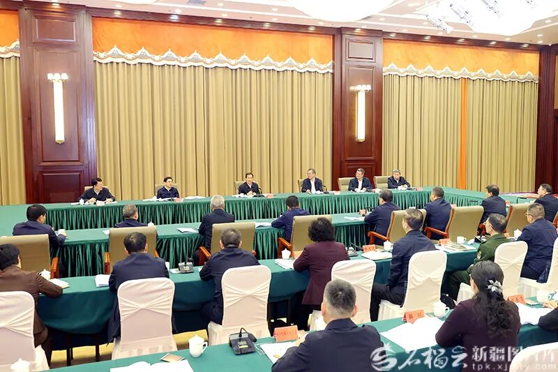 10月29日,自治区党委书记、兵团党委第一书记、第一政委陈小江听取哈密市工作汇报,宣讲党的二十届四中全会精神。石榴云/新疆日报记者 崔志坚 摄