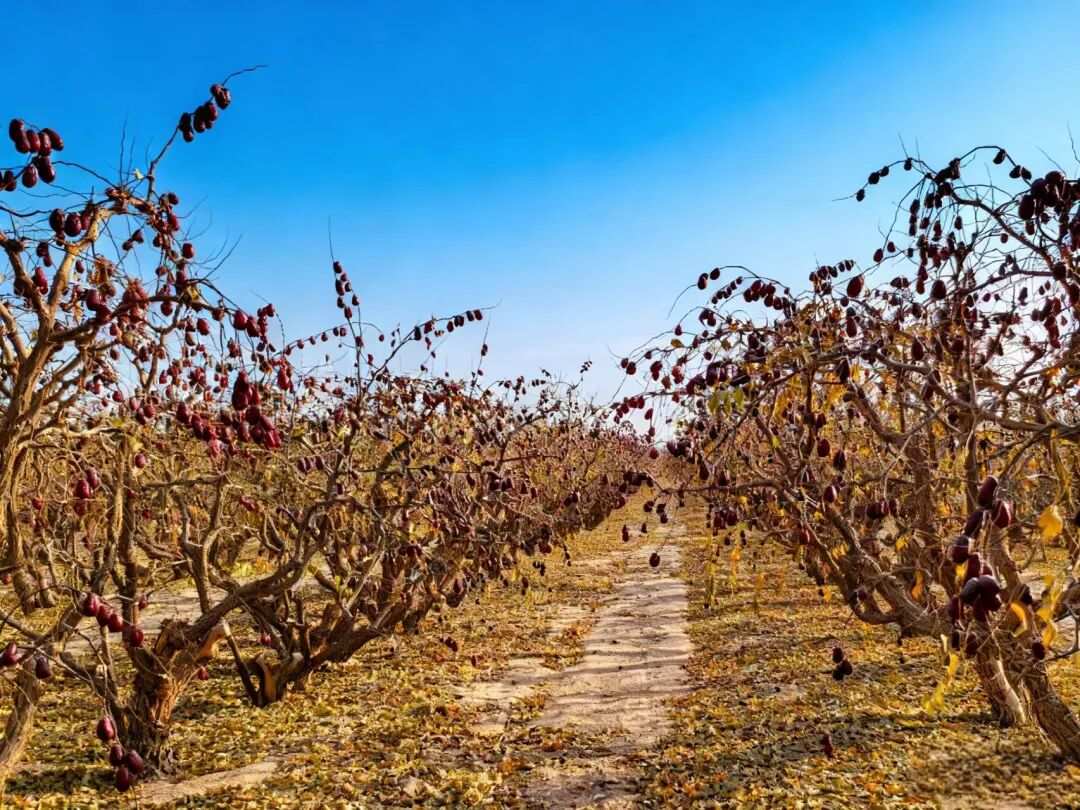 如今,行走在二二四团的红枣园里,处处可见职工群众忙碌的身影:有的穿梭林间仔细查看红枣成熟度,确保采收时达到最佳品质;有的搭建采收所需的支架、整理收纳工具,为11月初的集中采收做好充分准备,每个人脸上都洋溢着对丰收的期待。随着采收期的临近,这片戈壁绿洲上的“红色宝藏”即将从田间走向市场,为团场乡村振兴注入强劲动力。