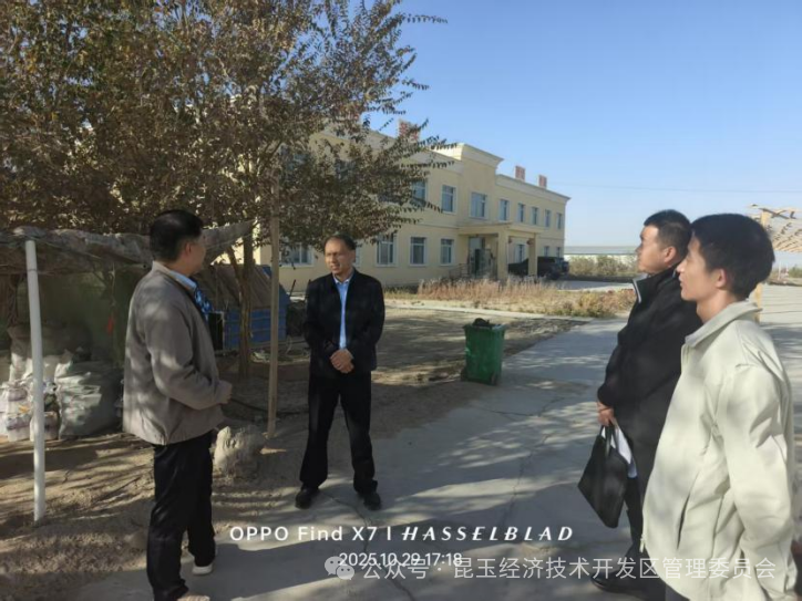 10月29日,第十四师昆玉市政法委常务副书记鲁岩峰到昆玉经济技术开发区调研指导流动人口服务。