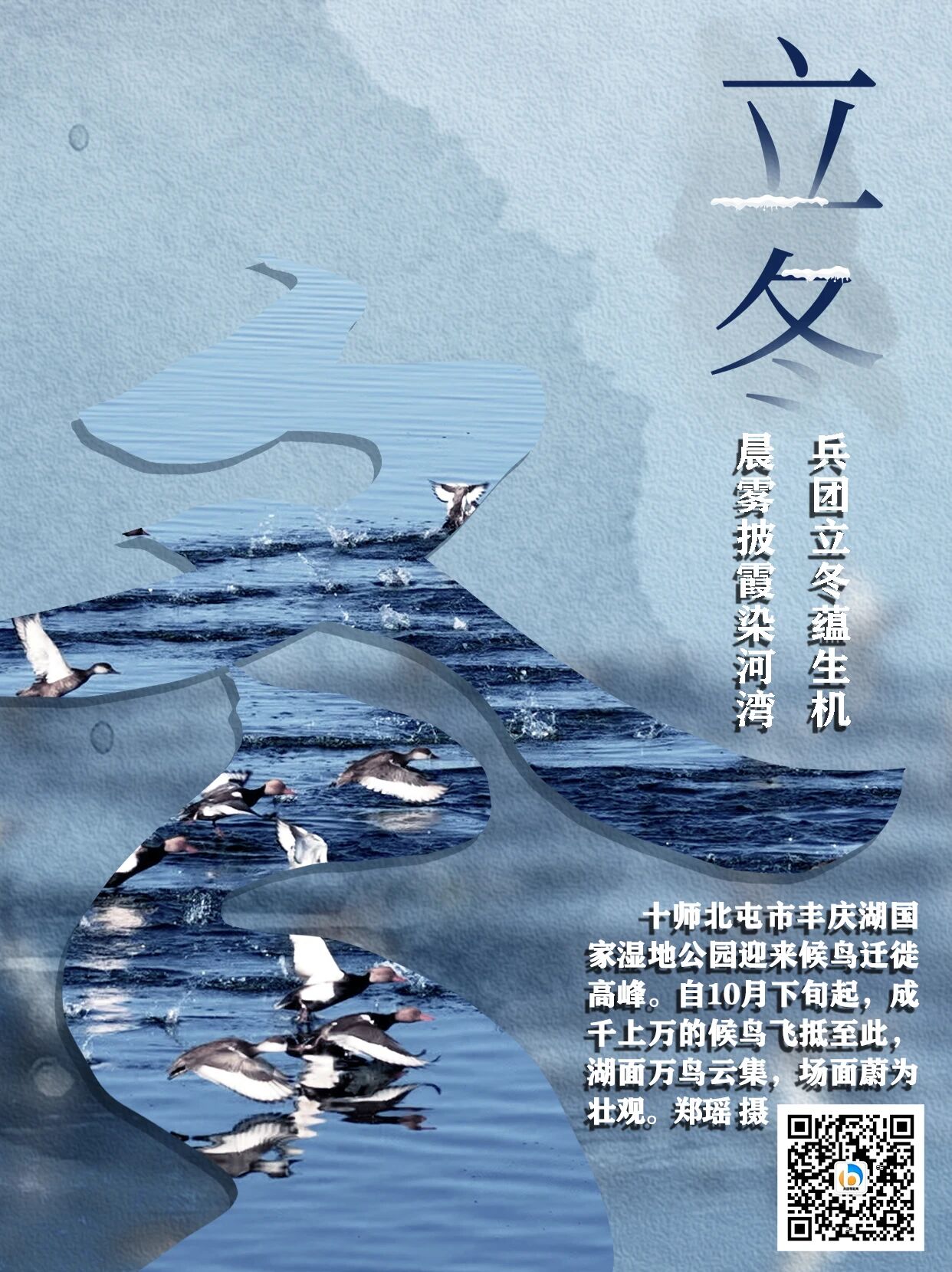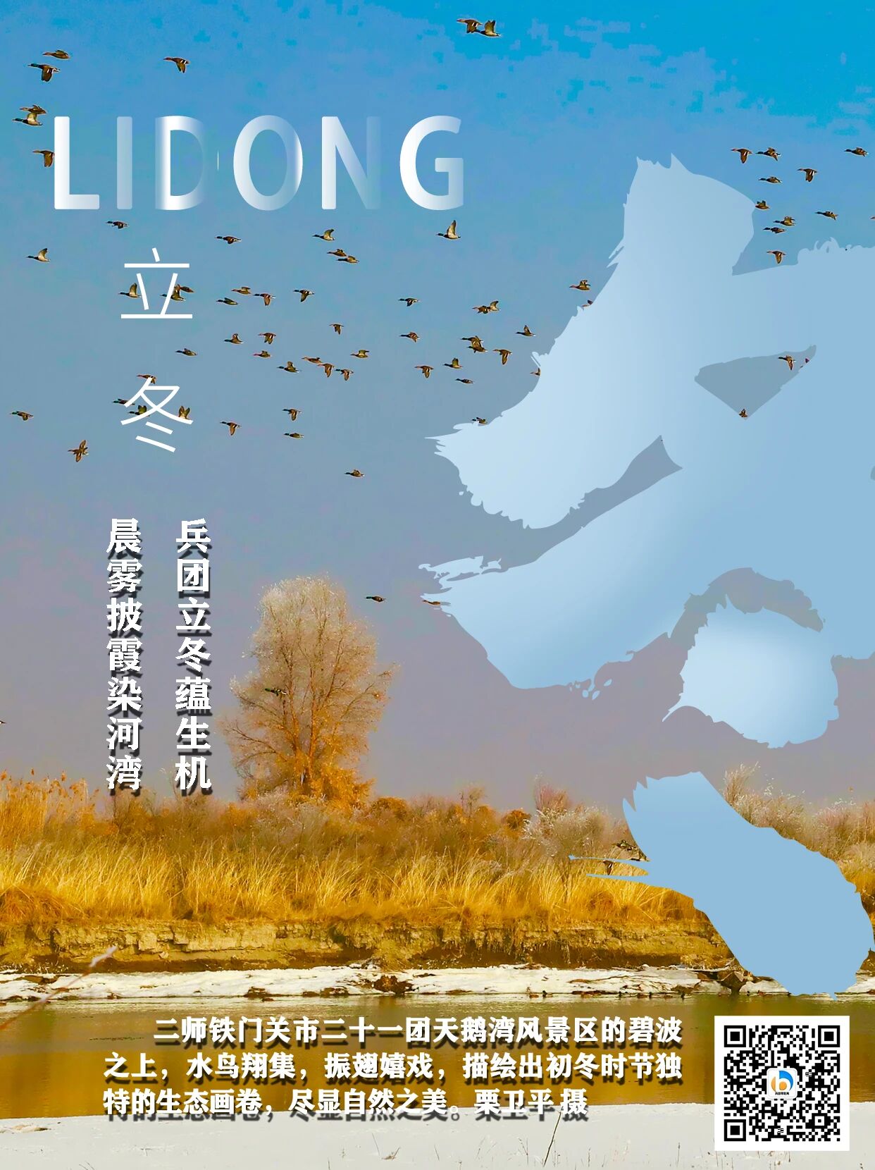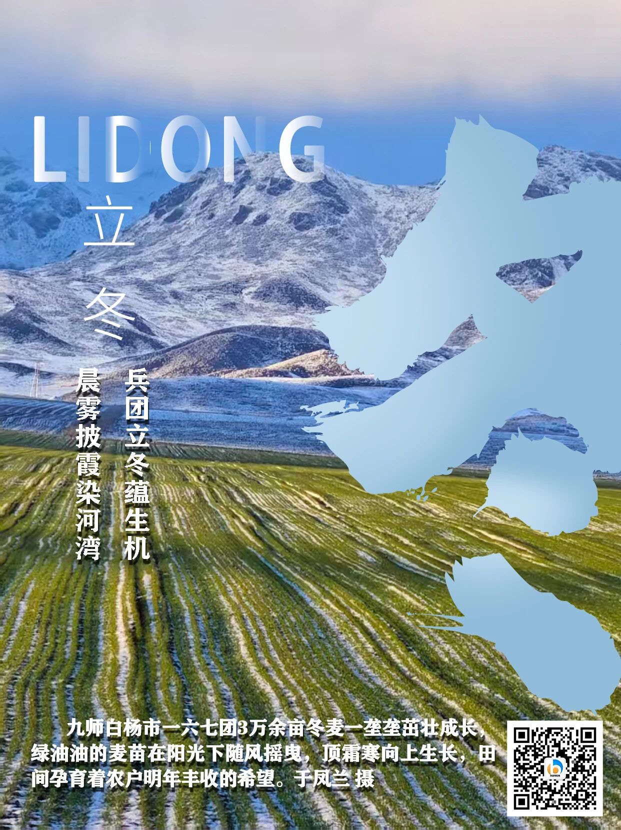 立冬时节的兵团,霜色渐浓。从二师铁门关市天鹅湾的水鸟翩跹,到伊犁河畔晨光与霞彩共舞的瑰丽天际;从七师胡杨河市枝头凝霜挂玉的雾凇诗行,到八师石河子田野里犁车翻涌的沃土尘烟——冬的笔触在兵团大地上从容铺展。九师白杨市的万亩冬麦正于霜寒间挺立生长,垄垄翠绿默默孕育着来年的丰收;十师北屯市丰庆湖湿地的万鸟云集,以生命的盛大迁徙为这幅静谧初冬图景注入了磅礴的生机。
