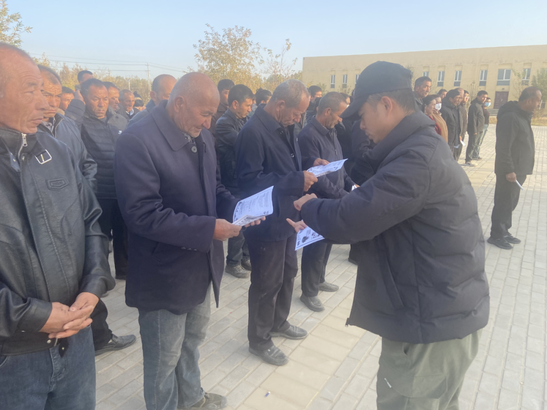 伴随着雄壮的国歌声,鲜艳的五星红旗在连队广场冉冉升起,全体人员庄严肃立,行注目礼。升旗仪式结束后,工作人员立即开展市容环境宣传工作。工作人员一边向连队居民发放《市容环境卫生管理条例》《城市生活垃圾管理办法》等宣传手册,一边用双语耐心讲解相关内容,居民们边听边看,也明白了维护团镇环境的重要性。