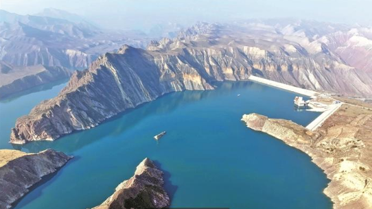 八师石河子市肯斯瓦特水库,航拍视角下的地貌景观(摄于10月22日)。克迪尔亚·库尔班 邢文亮 摄影报道