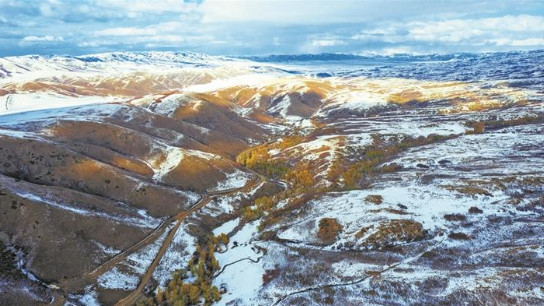航拍视角下的九师一六五团巴依木扎草原,尽显“云上草原”的独特韵味(摄于10月30日)。 闫安 张魁 摄影报道