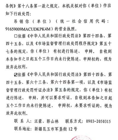 第十四师市场监督管理局行政处罚告知书(十四师市监罚告〔2025〕71号)