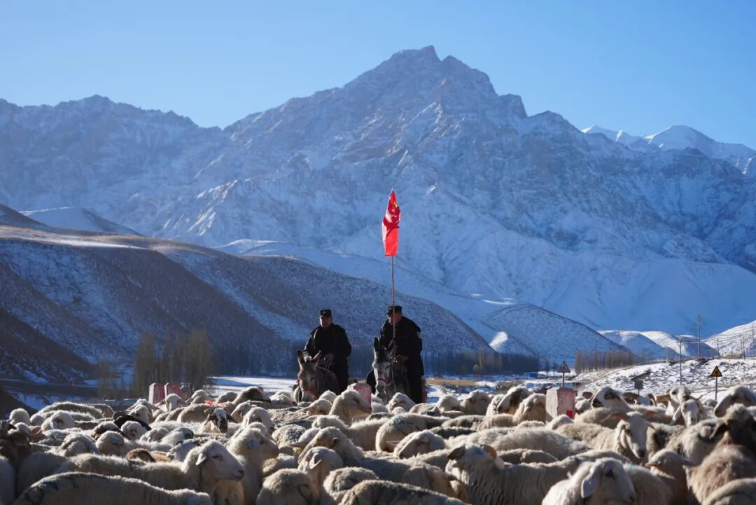 11月8日,和田垦区公安局昆牧派出所党员突击队协助72户牧民与6700余只羊踏上冬季牧场的转场之路。队伍穿越了60余公里,翻越8座海拔超3000米以上的高山,横渡6条河流,最终抵达3处越冬点。