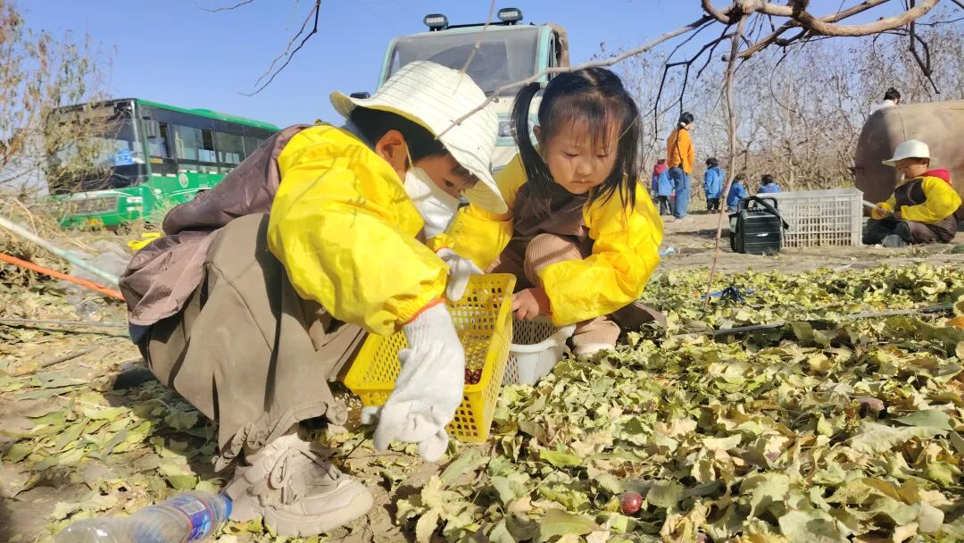 “看!我捡到了一个超级大的红枣!”“老师,红枣闻起来好香啊!”孩子们在劳动中充分调动了各种感官,不仅锻炼了动手能力和协作精神,更在潜移默化中加深了对二二四团特色农产品——红枣的认知与情感。