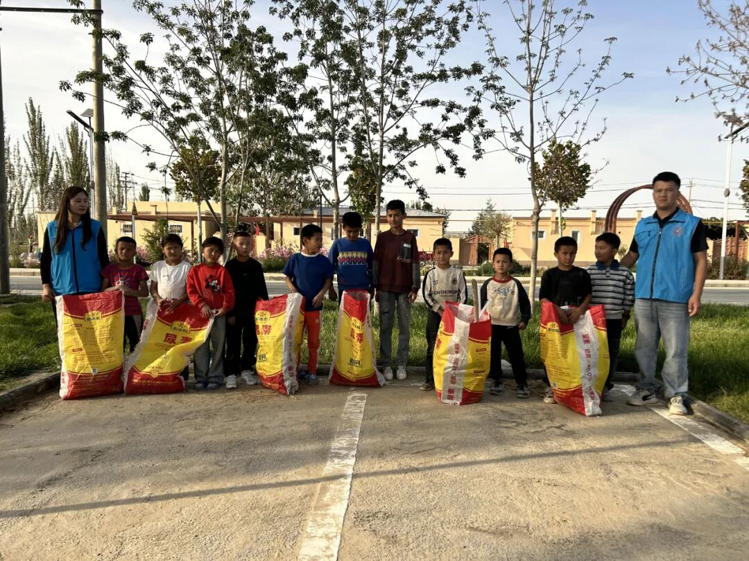 孩子们在连队网格员兼“环保实践课”导师穆萨·麦提赛迪的带领下,化身为“环保小卫士”,手持夹子、垃圾袋等工具,仔细搜寻着绿化带、人行道和公共活动区域的纸屑、塑料包装等废弃物。合作分工,互帮互助,他们认真劳动的身影成了连队里一道亮丽的风景线。