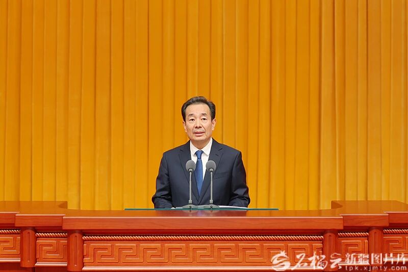 自治区党委副书记、自治区主席艾尔肯·吐尼亚孜主持。自治区人大常委会主任祖木热提·吾布力,自治区政协主席努尔兰·阿不都满金,自治区党委副书记、兵团政委何忠友,自治区党委副书记张柱出席。