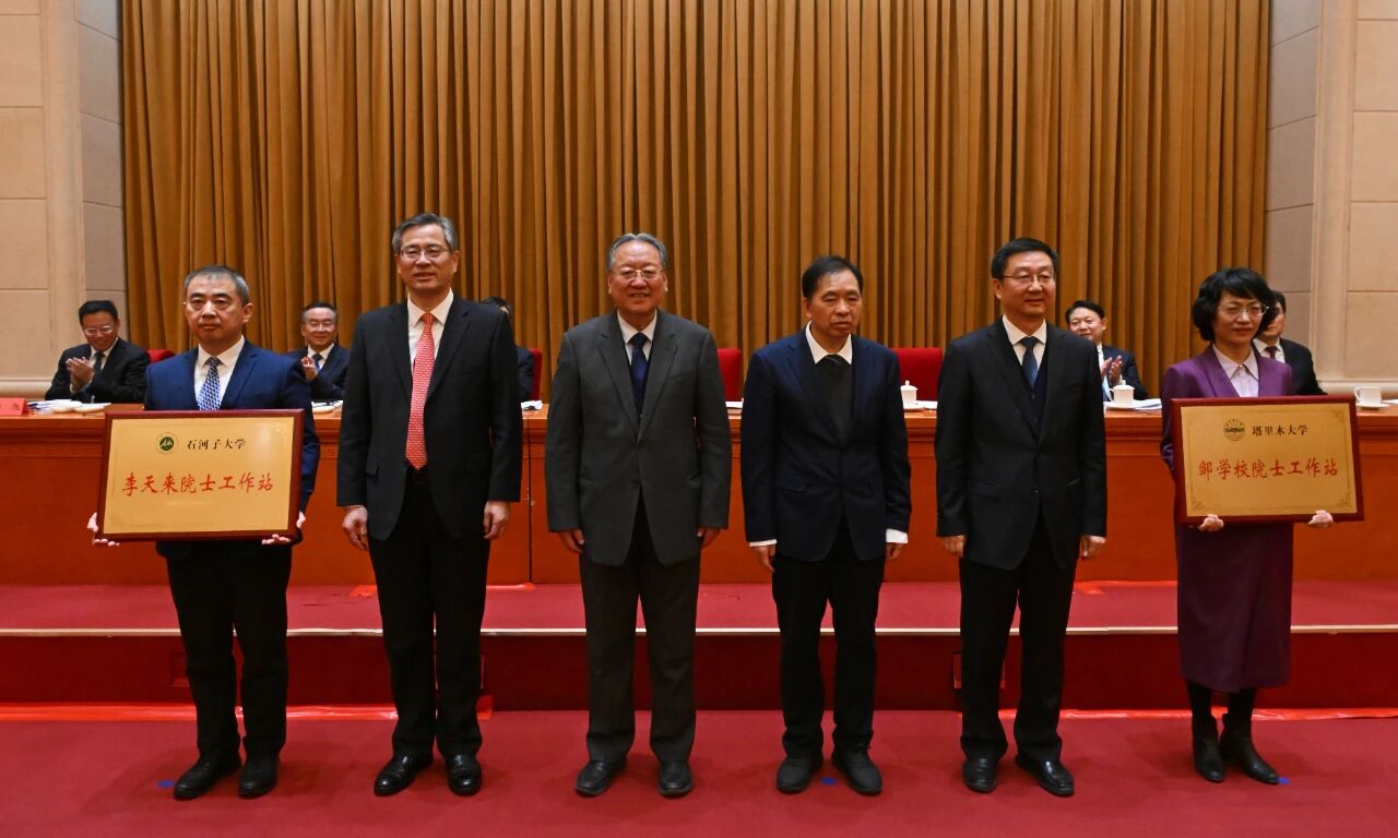 11月20日,在兵团科技创新大会上,自治区党委副书记、兵团党委书记、政委何忠友,自治区副主席、兵团党委副书记、司令员薛斌为院士工作站授牌。兵团日报全媒体记者 张鑫 摄