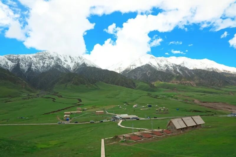 盛夏时节,昆仑山大峡谷迎来了一年中最美的时节。皑皑雪山巍峨耸立,无垠草原铺满天际,成群的牛羊、掠过的飞鸟与蓝天、白云、绿茵交相辉映,构成一幅色彩明艳、灵动鲜活的昆仑画卷。
