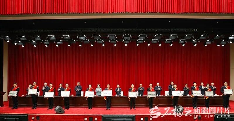 田湘利、伊力扎提·艾合买提江、哈丹·卡宾、张文胜出席,王琳主持。自治区各单位负责同志、先进典型代表等在主会场参加会议。各地州市、县市区设分会场。
