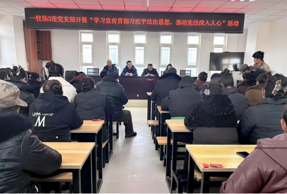 为深入学习贯彻习近平法治思想,弘扬宪法精神,维护宪法权威,在第十二个国家宪法日来临之际,一牧场三连党支部组织开展以“学习宣传贯彻习近平法治思想,推动宪法深入人心”为主题宣传活动,进一步增强连队职工群众宪法意识和法治观念。