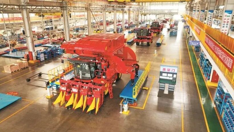 眼下,在五家渠经济技术开发区,新疆天鹅现代农业机械装备有限公司的生产车间里一派繁忙景象,工人们加紧对采棉机进行最后调试。作为兵团农机装备产业链“链主”企业,该公司攻克多项核心技术难关,研发出整机国产化率达97%的高端采棉机,建成国内首条脉动式高端采棉机智能制造生产线。
