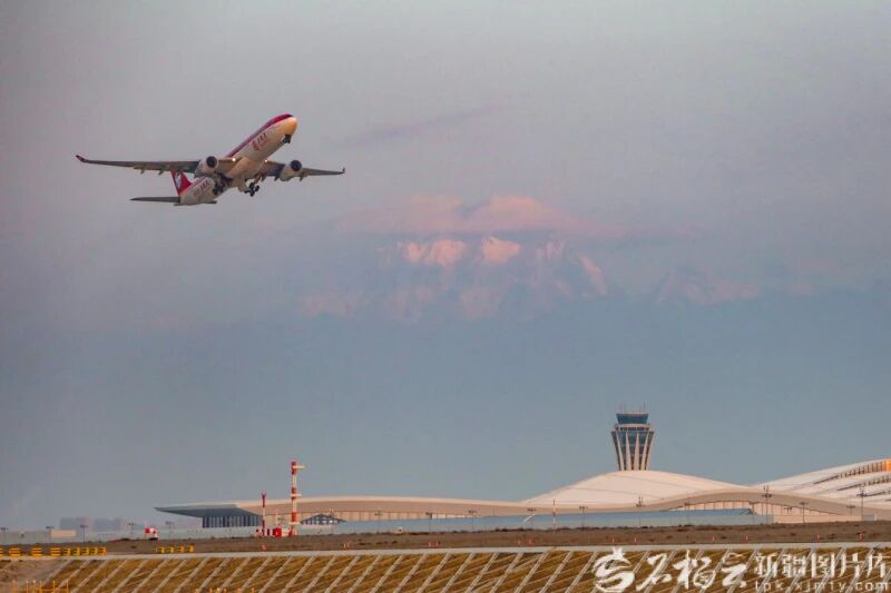 一架客机从乌鲁木齐天山国际机场启航(资料图片)。石榴云/新疆日报记者 蔡增乐摄