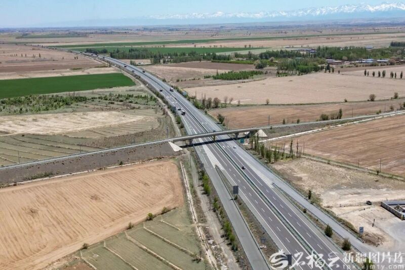G7京新高速公路两旁沃野千里(资料图片)。石榴云/新疆日报记者 蔡增乐摄