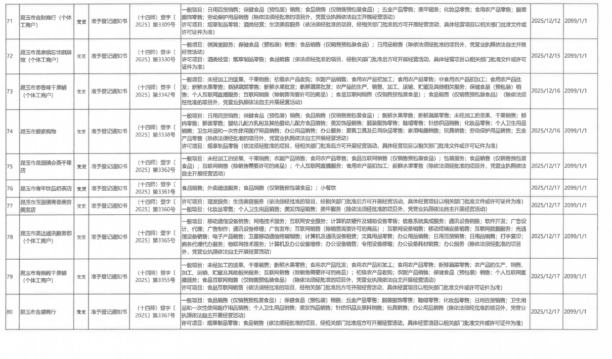 根据《中华人民共和国食品安全法》《中华人民共和国食品安全法实施条例》等相关法律法规,以下77家市场主体(自然人)满足许可办理条件,现将81条行政许可信息进行公示,请社会各界予以监督。
