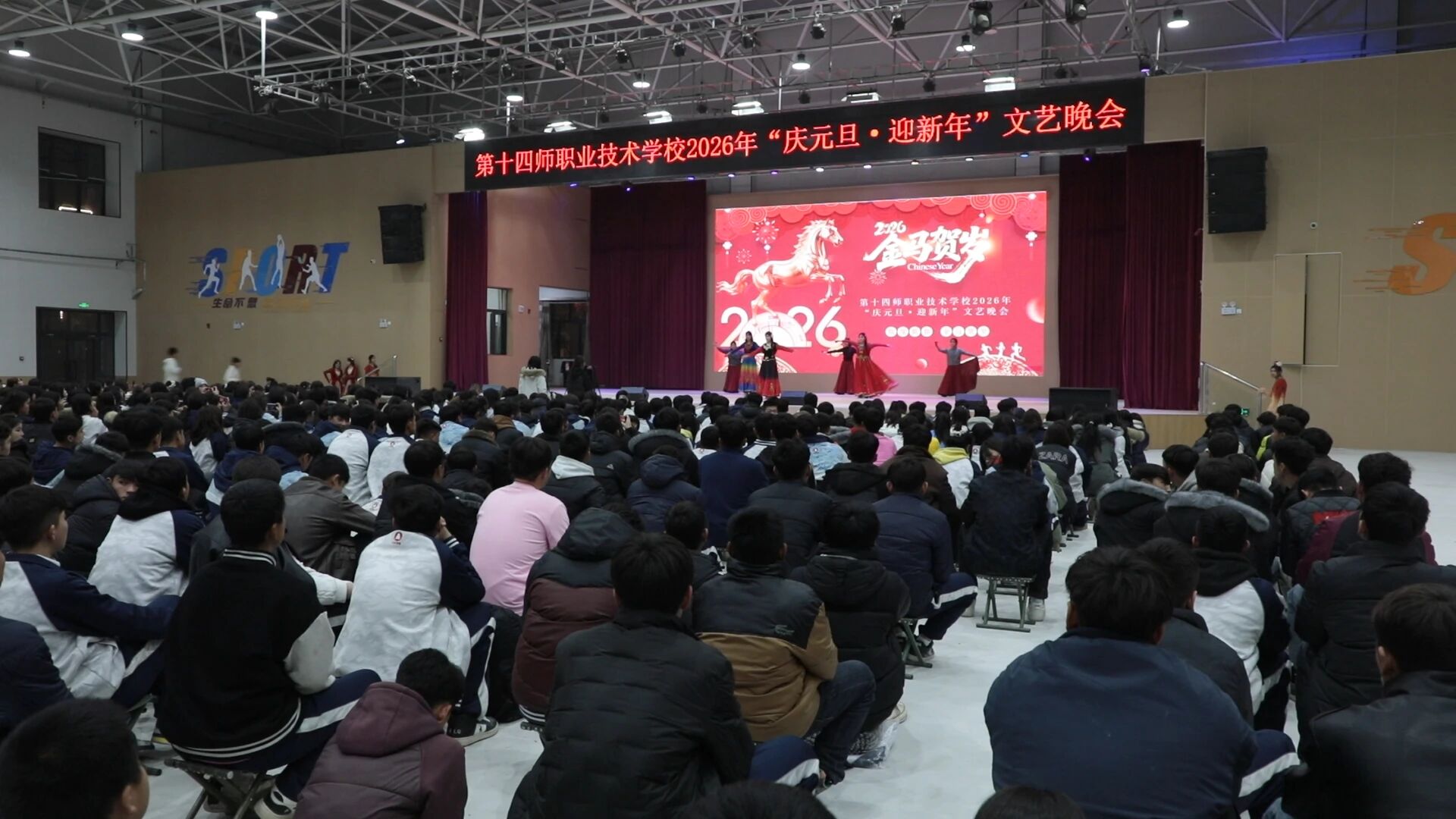 12月30日,第十四师职业技术学校举行2026年“庆元旦·迎新年”文艺晚会,1200名师生欢聚一堂,喜迎新年。