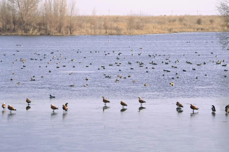 图:圣泉湖湿地内候鸟云集