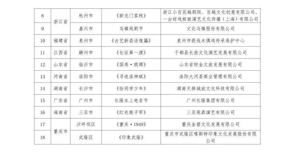 据介绍,文化和旅游部在各省级文化和旅游行政部门、有关中央企业推荐申报项目的基础上,经专家评审等程序,按照思想内涵深刻、艺术表现精湛、业态模式创新、市场反响良好、运营管理有效、带动消费作用明显、社会效益和经济效益显著的标准,确定了这些项目。