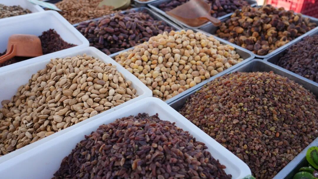 干果区则是另一番香甜景象,色泽鲜亮的当地红枣、颗粒饱满的巴旦木、开心果、晶莹剔透的葡萄干······摊主们熟练称重、分装,生意火爆。