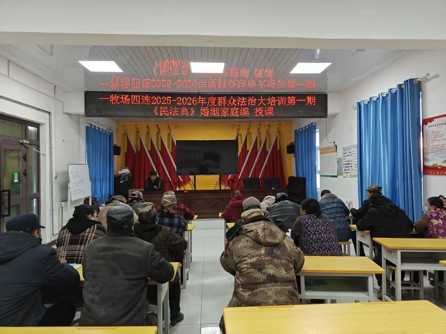一牧场则召开现场推进会强调群众法治大培训工作的要求。会上,2名干部与9名职工群众“以案说法”。各连队(社区)同步开展民法典知识竞赛、观看革命历史题材电影、普法讲座等。