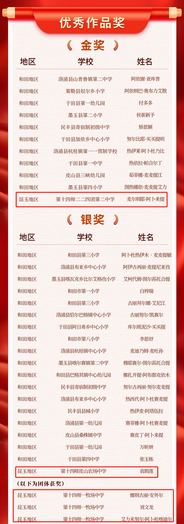 获得金奖的二二四团第二中学学生麦尔则耶·阿卜来提说:“朗诵让我学会如何更好地表达内心情感,拉近了与家人、同学之间的距离。”
