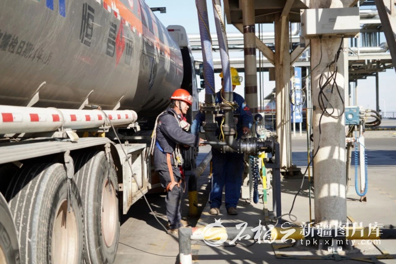 哈密能源企业冲刺首季开门红。图为1月19日,哈密市伊吾工业园区新疆广汇新能源有限公司工作人员正在进行产品装车准备工作。高志华摄