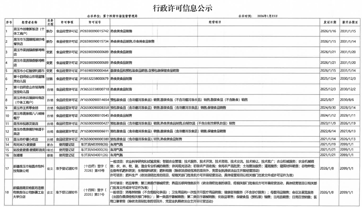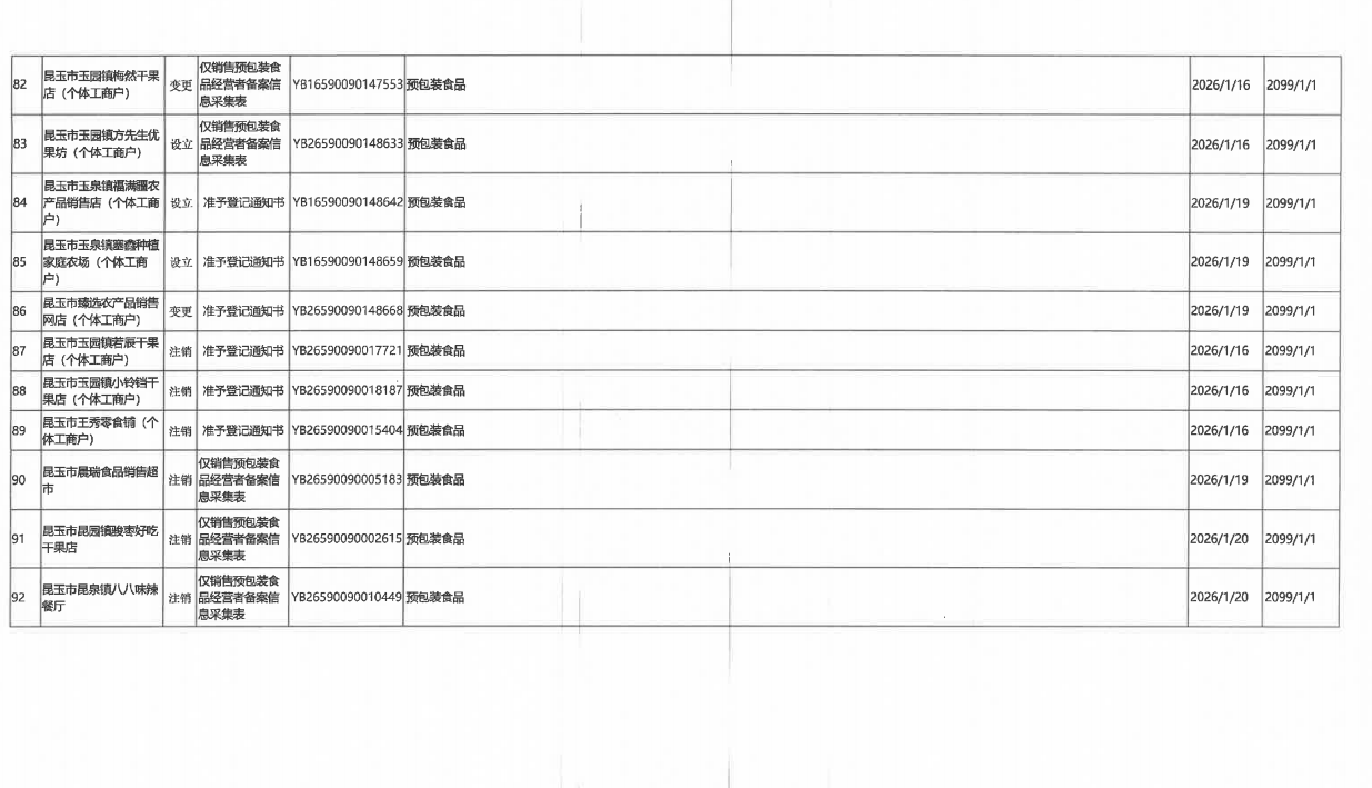 根据《中华人民共和国食品安全法》《中华人民共和国食品安全法实施条例》等相关法律法规,以下76家市场主体(自然人)满足许可办理条件,现将92条行政许可信息进行公示,请社会各界予以监督。