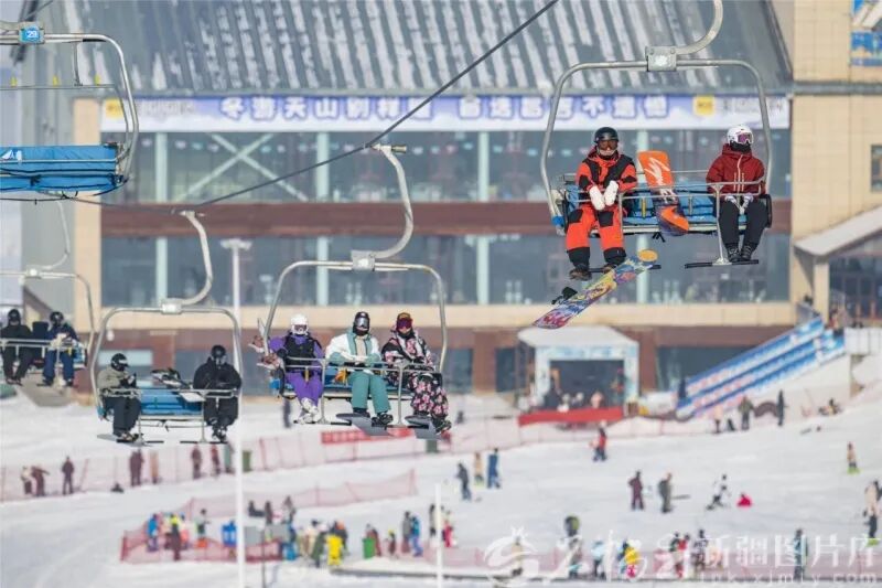 昌吉市努尔加滑雪场,游客乘坐索道前往雪道顶端。 何龙 摄 阿勒泰地区则依托“人类滑雪起源地”品牌,持续释放冰雪魅力。借助持续的推广宣传、完善的旅游服务保障以及航企不断加密的航线,阿勒泰地区四大滑雪度假区接待游客数量持续攀升。当地文旅部门数据显示,这个雪季,将军山国际滑雪度假区已接待滑雪游客超50万人次。 冰雪融合拓展消费新场景 白雪变白银,新疆各地积极推动“冰雪+”跨界融合,打造多元消费新场景,激活冬季经济活力。 1月25日,新星市第五届冰雪文化旅游嘉年华在东疆夏宫·庙儿沟景区开幕。当地精心打造的雾凇冰挂、冰封玫瑰、亭台雪景等特色景观,成为游客打卡的热门点位,活动将持续至2月底。此次活动包含冰雕艺术展、雪地篝火晚会、非遗手作市集、冰屋咖啡体验等20余项内容,开幕首日即吸引游客超5000人次。 冰雪旅游也在不断尝试新突破。位于昌吉市的“丝路冰城”冰雪大世界,吸引了众多市民和游客前来体验冰雪乐趣。“2025年12月31日正式开业,截至目前已累计接待游客超20万人次。”该冰雪大世界现场负责人马超介绍,园内不仅有精美的冰雕,还设置了企鹅互动、驯鹿合影、雪地摩托、冰上自行车等20余项冰雪娱乐项目。在和田县雪山旅游度假区,来自各地的游客滑雪橇、踩雪板、坐雪圈……在皑皑白雪中尽享冰雪运动的速度与激情。 冰雪映照笑脸,运动点燃激情。眼下,新疆大地正涌动着冰雪旅游与文化交融的滚滚热潮。这一片片雪原、一场场赛事、一幕幕欢庆,不仅绘就了冬日新疆的活力图景,更生动铺展着“冰天雪地也是金山银山”的实践篇章。