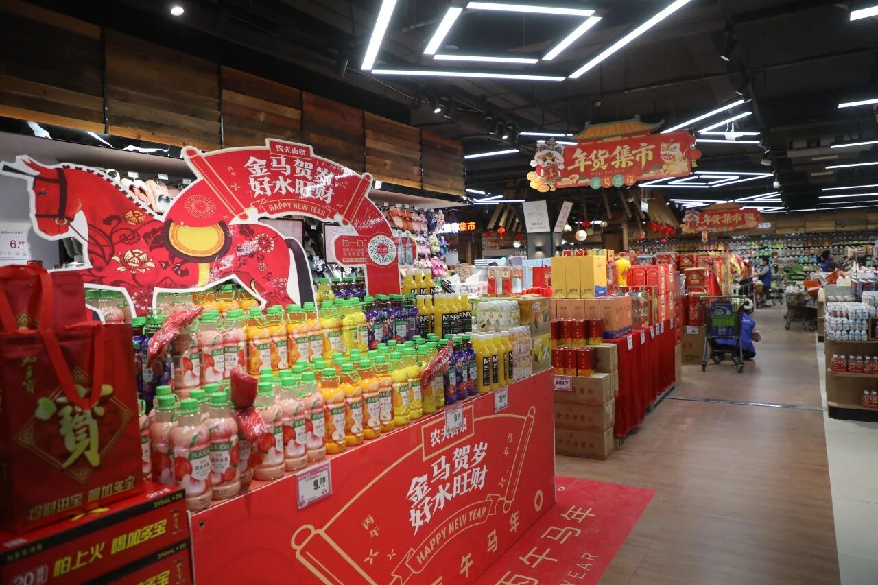 为方便市民采购,超市提前筹划并设立专门区域。该超市主管叶艺静介绍:“我们准备了丰富的年货,包括各类礼盒、福字、春联等,货源充足。通过设置‘年货集市’专区和稳定价格,力争让顾客一站式购齐,过个丰盛团圆年。”