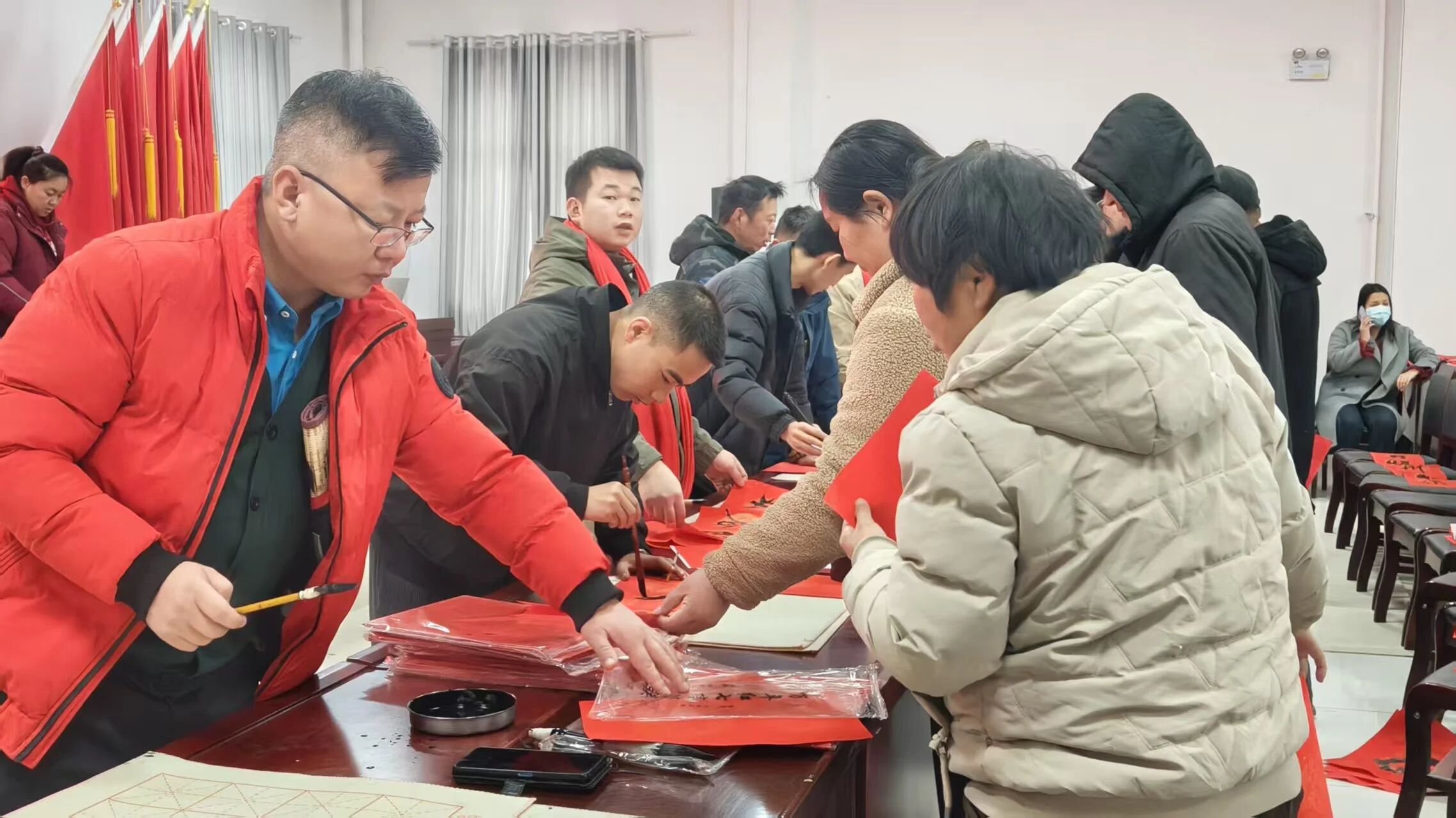 2月3日,在二二四团一连及和泰新区,活动现场长桌排开、红纸铺就。书法老师们凝神静气、挥毫泼墨,楷书端庄工整,行书洒脱灵动。“马跃前程步步高,春临福宅年年好”“和顺门第增百福,平安岁月纳千祥”……一副副笔力遒劲、寓意美好的春联陆续完成,引得现场群众驻足观赏、争相领取。