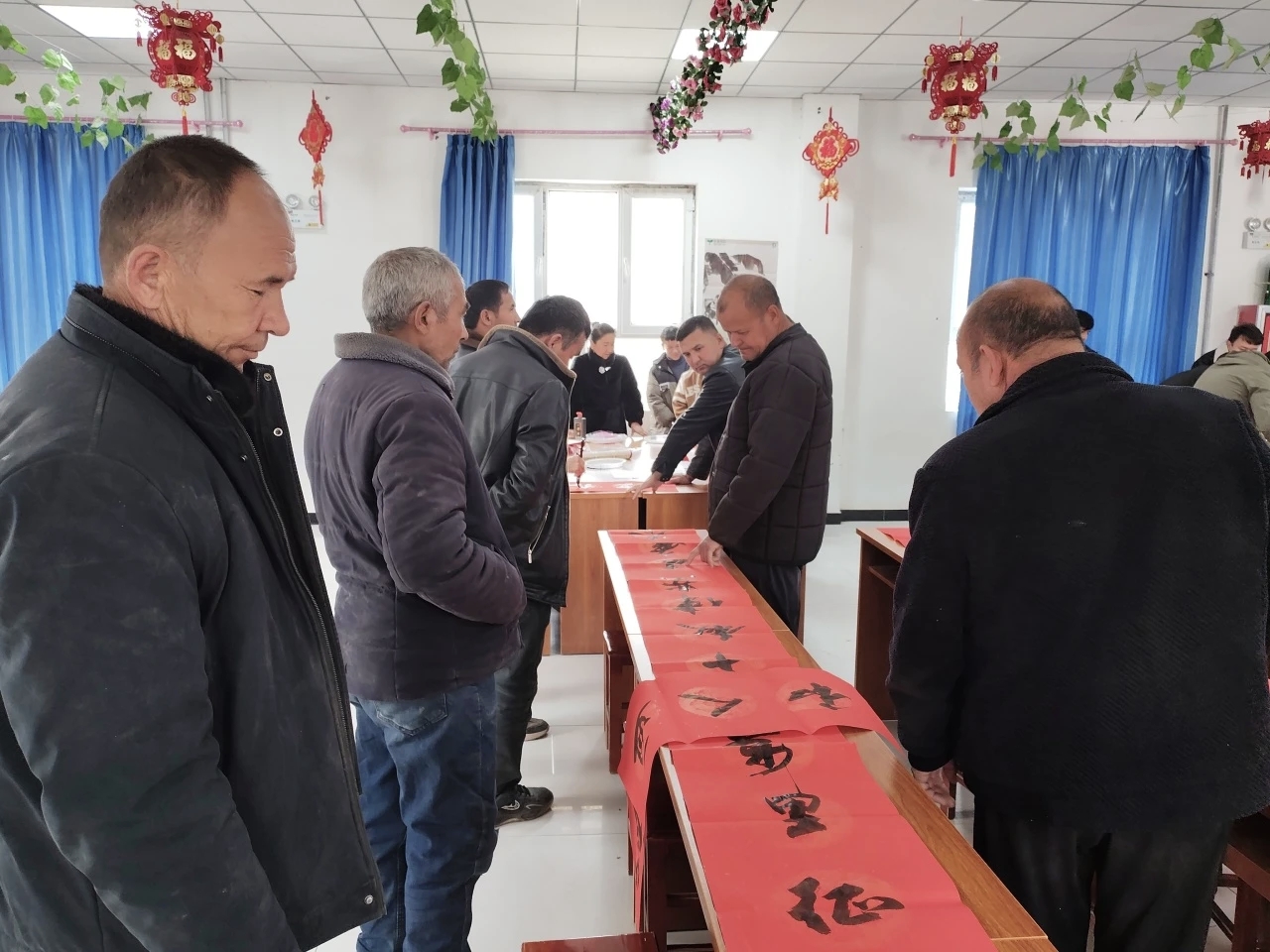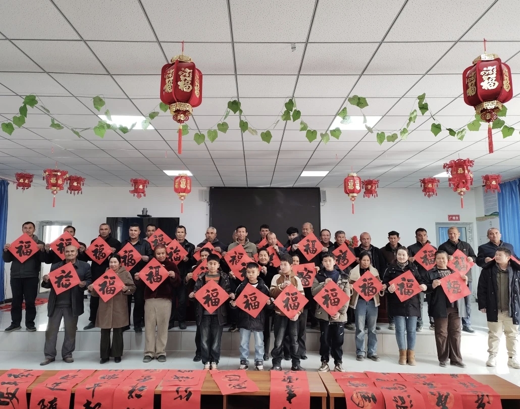 2月2日,在一牧场活动现场,闻讯赶来的职工群众络绎不绝。有的静静观摩书法创作,有的主动帮忙铺纸晾晒。当接过散发着清新墨香的春联和“福”字时,每个人脸上都写满笑意。据统计,当天共送出春联1120余副、“福”字2100余个。