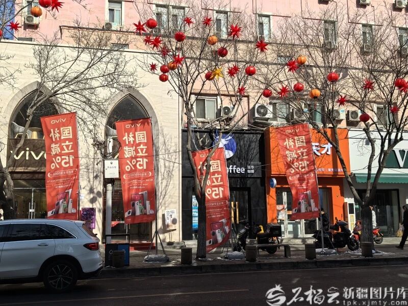 2月12日,乌鲁木齐市中山路各商家纷纷在门口立起展架,宣传以旧换新政策。