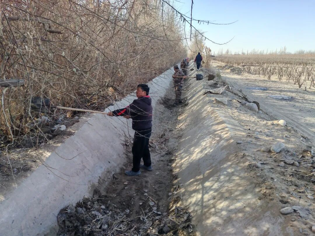 以实干启新程,连队党员冲锋在前,职工群众踊跃参与,清除渠内淤泥、杂草与杂物,平整渠堤、疏通水道。