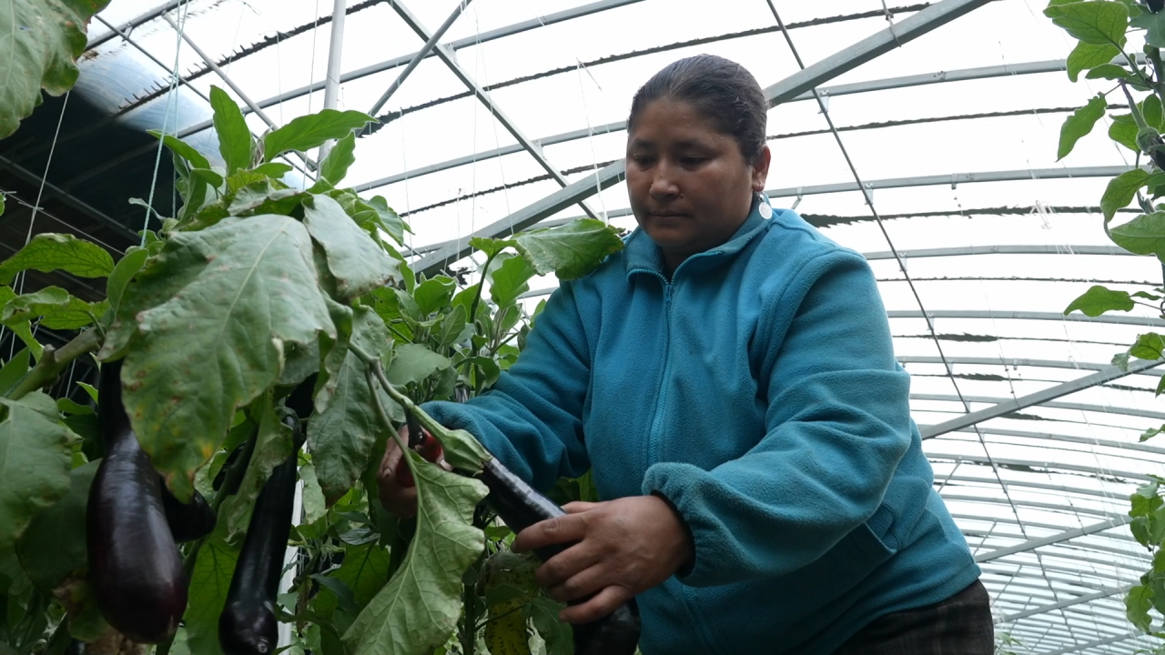 果蔬农业科技发展有限公司技术员李乃合说:“南疆光照充足、少雨,光合作用强,病虫害也相对较少。相比传统种植,大棚蔬菜的亩产量能高出30%。传统种植的坐果期只有两到三个月,而大棚蔬菜的坐果期长达8个月,不仅能实现错季上市,还能卖个好价钱。”