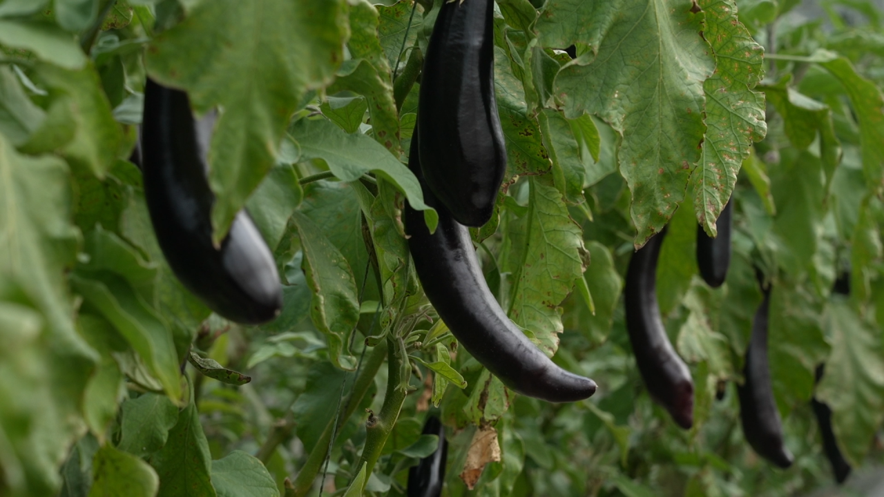 走进和墨洛产业园种植大棚,绿意盎然的茄藤上,挂满了紫黑油亮的长茄子。工人们手持剪刀,熟练地将茄子剪下、称重、装筐,动作一气呵成。刚采摘下来的茄子还带着棚内的湿气,即将被运往周边市场,走上百姓餐桌。