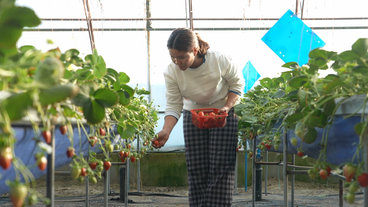 蔬菜大棚采收正忙,草莓种植大棚则迎来了采摘热潮。得益于充足的光照与精细化田间管护,棚内草莓长势喜人,红彤彤的果实挂满垄间,吸引了不少市民前来体验采摘乐趣。
