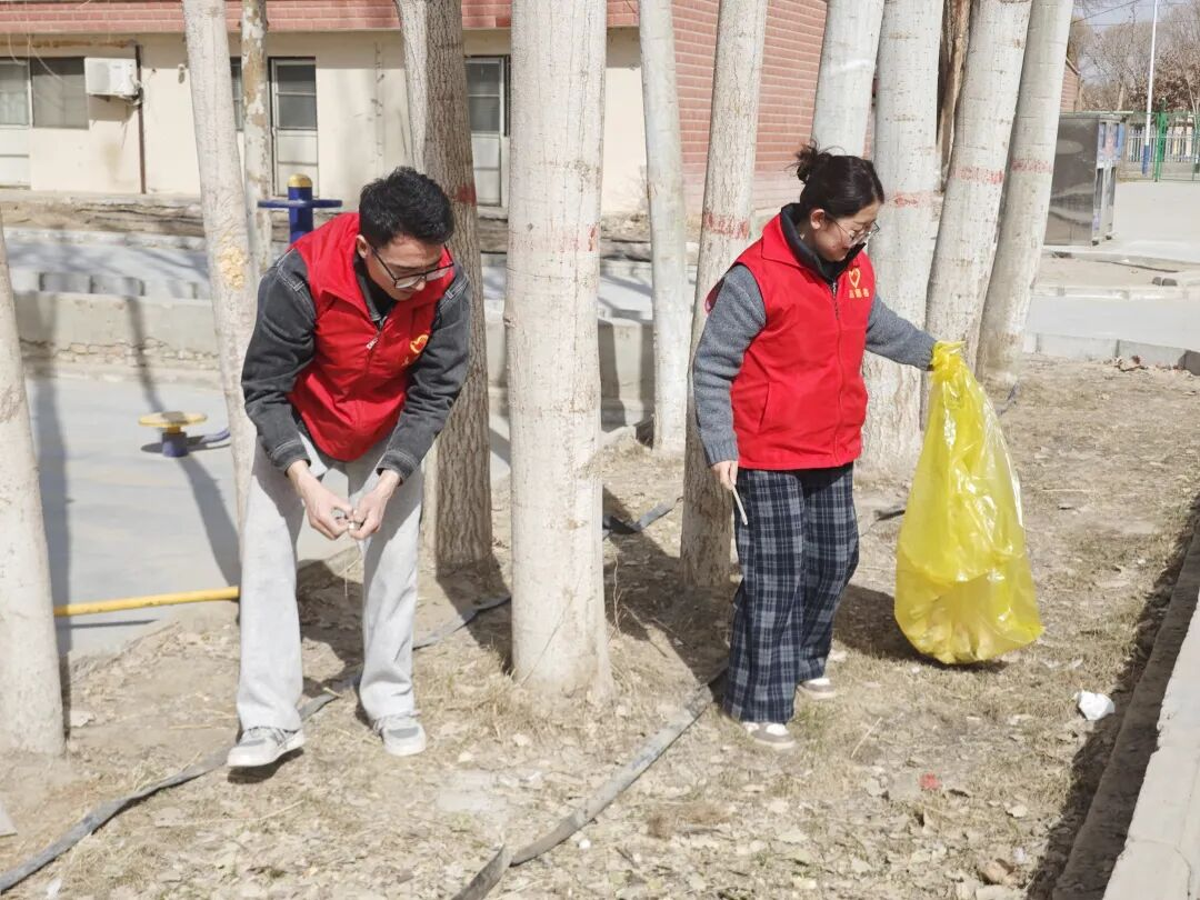 团场上下以环境整治为抓手,将志愿服务与文明创建紧密结合。退役军人志愿服务队对团场主干道绿化带进行集中清理,整治卫生死角、清除积存垃圾;七连组织工作人员对办公区域、辖区道路及公共区域开展全面清扫,捡拾白色垃圾、清理杂物杂草;八连党员及志愿者聚焦民族团结小花园,开展开春土地平整、打埂培土等绿化准备工作,深入田间地头清理残膜、枯枝;昆仑社区沙海新兵志愿服务队也同步行动,志愿者们身着统一红色志愿马甲,手持铁锹、垃圾袋、抹布等工具,对小区内绿化带垃圾、宣传栏进行全面清理,分工协作清理枯枝落叶,还先后前往团养老服务中心、暖心驿站及长年患病卧床老人家中,细致打扫室内外环境,为居民和老人营造干净整洁、温馨舒适的生活与活动空间。一抹抹志愿红穿梭在团场街巷、田间地头、社区角落,用汗水擦亮团场颜值,营造出共建共享、干净整洁的良好氛围。