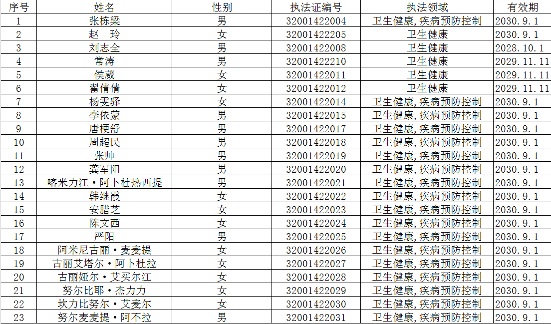 第十四师卫健委(疾控局)行政执法人员信息公示
