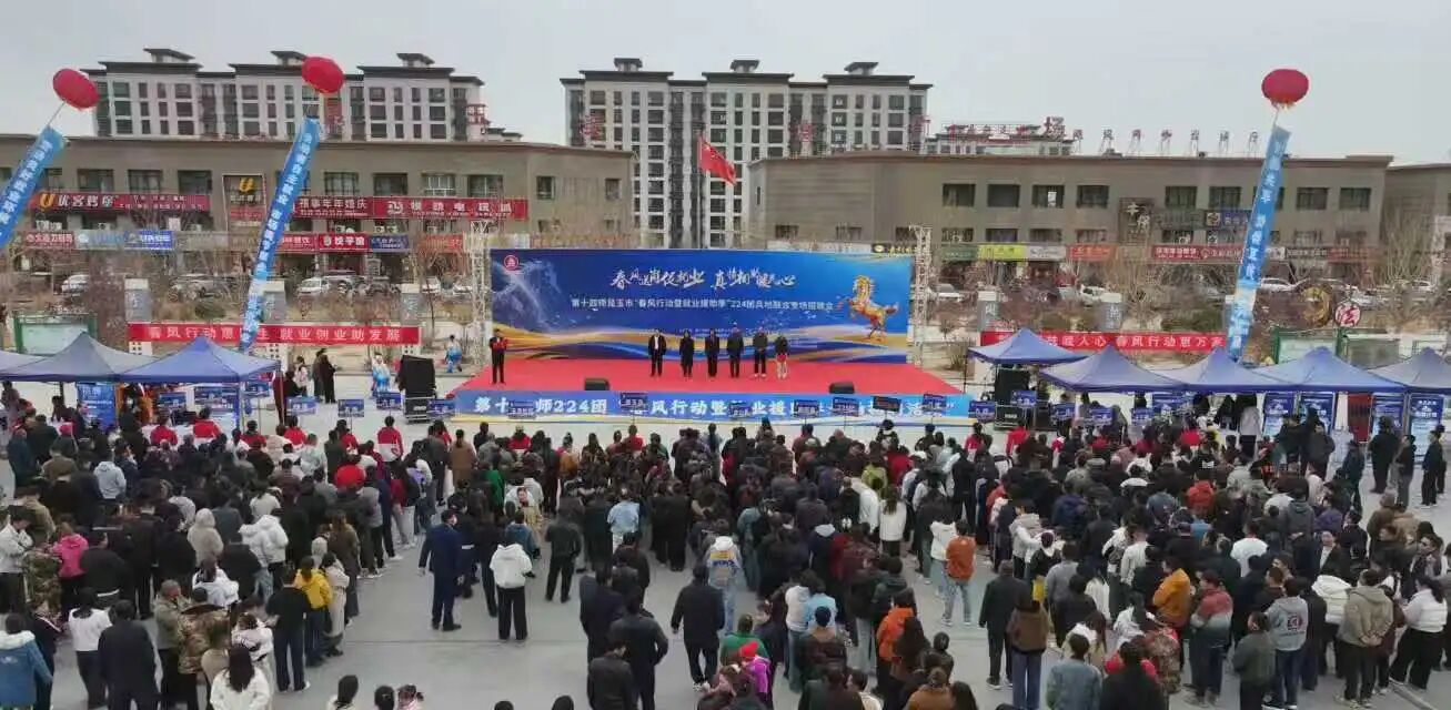 3月12日,第十四师昆玉市“春风行动暨就业援助季”二二四团兵地融合专场招聘会在时代广场举行。