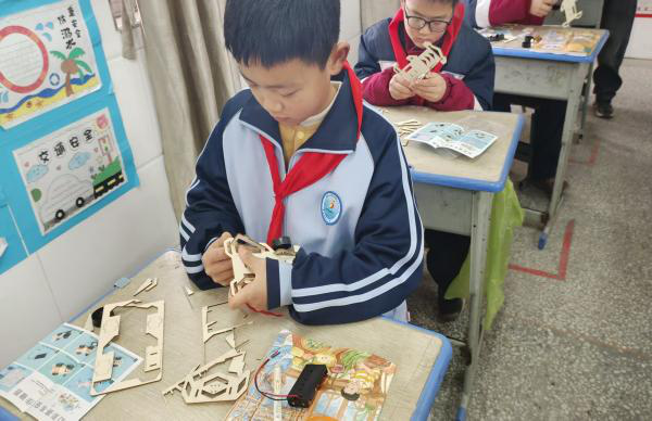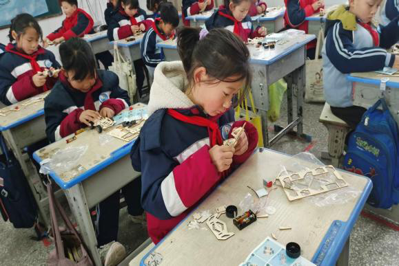 成武县党集中心小学的孩子们做手工瞬间。
