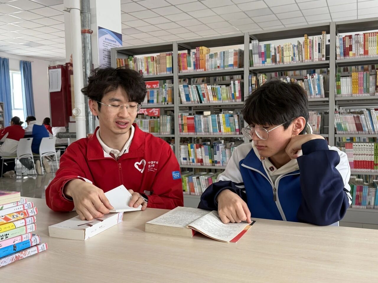 3月18日下午,首场活动在第十四师职业技术学校图书馆举行。西部计划志愿者分享了《西长城》《红星照耀中国》两本书,带领师生重温革命岁月。分享结束后,志愿者与学生结对共读,讲解阅读方法,帮助学生培养良好阅读习惯。活动后,学生们撰写了致革命先辈的一封信,表达崇敬之情与爱国情怀。