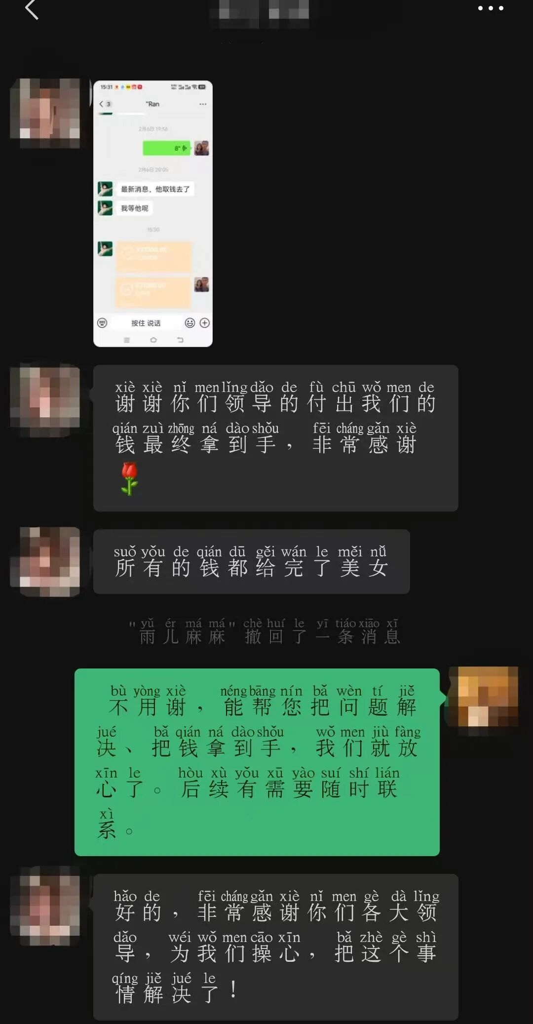 连续十余天里,工作人员紧盯纠纷不放,反复沟通、耐心劝导,一步步化解双方隔阂与对立情绪,逐步达成共识。经过不懈努力,冉某最终同意全额返还费用,当场将5.8万元社保代缴款悉数交还给姬某,这起民生纠纷得以圆满化解,姬某悬了许久的心终于落了地。