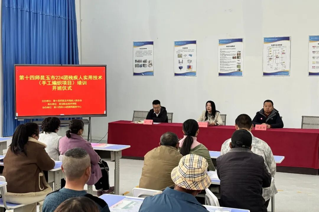 近日,第十四师二二四团残疾人实用技术(手工编织)培训班在第十四师昆玉市公共实训基地顺利开班,20名残疾人朋友及家属齐聚一堂,开启技能学习之旅。本次培训由师市残联主办、昆玉职业技术学院承办、二二四团便民服务中心协办,旨在帮助残疾人掌握一技之长,拓宽就业增收渠道,是落实兵团“十大民生行动”中“乐业筑梦实事”的具体举措。