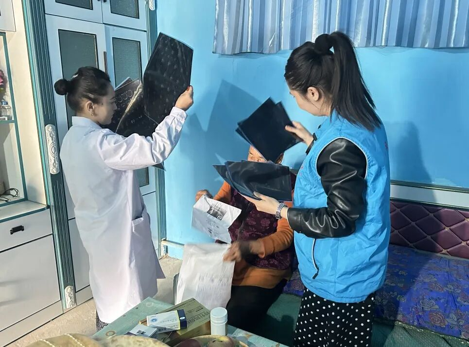近日,在入户走访中,二二五团四连专职网格员凯丽比努尔·麦提图尔隼发现一位子女不在身边的老人存在用药安全隐患,便及时联动连队卫生室医生介入处置,为老人更换正规可报销药品,既守护健康又减轻经济负担,用贴心服务筑牢基层民生防线。